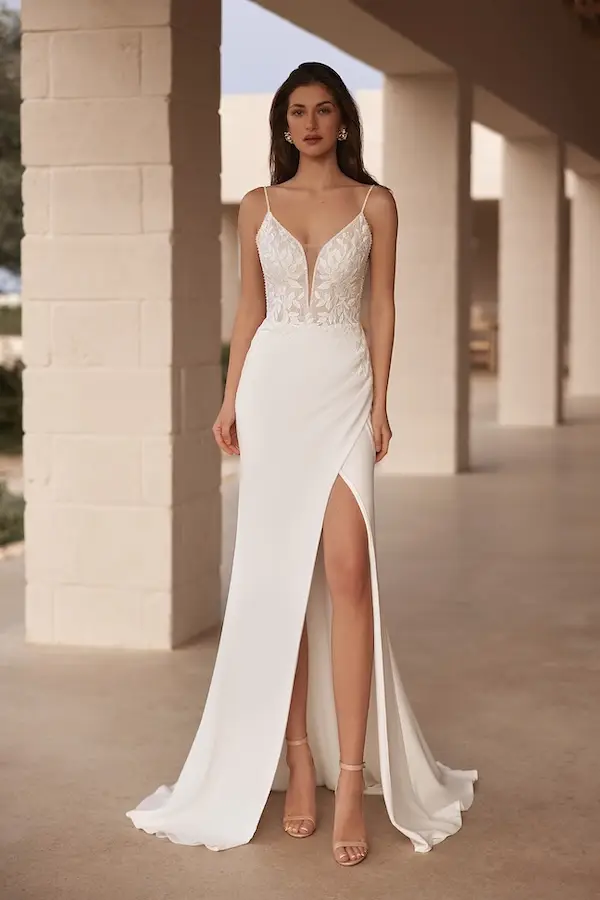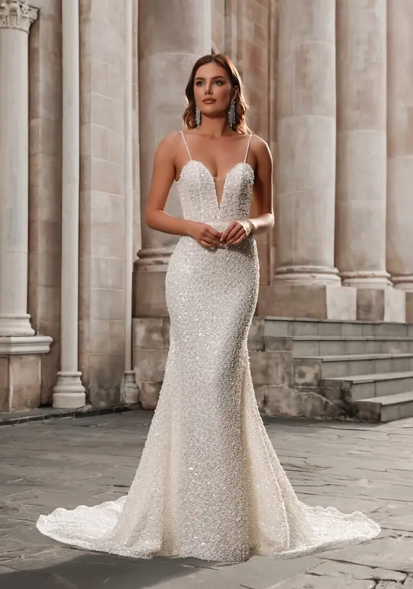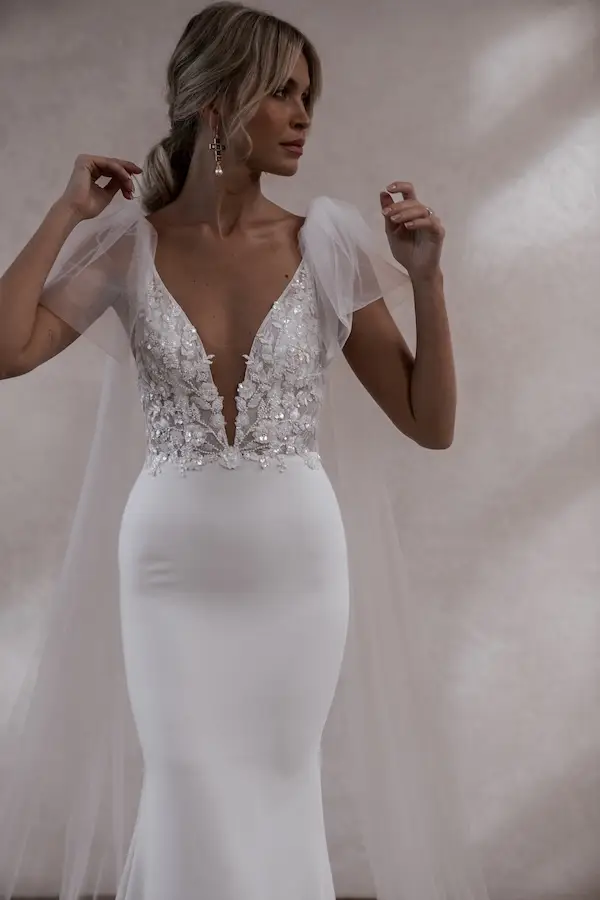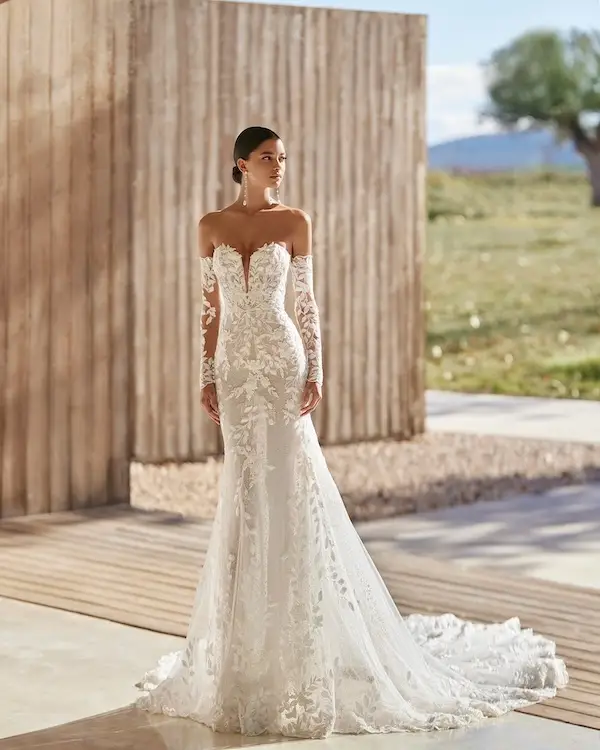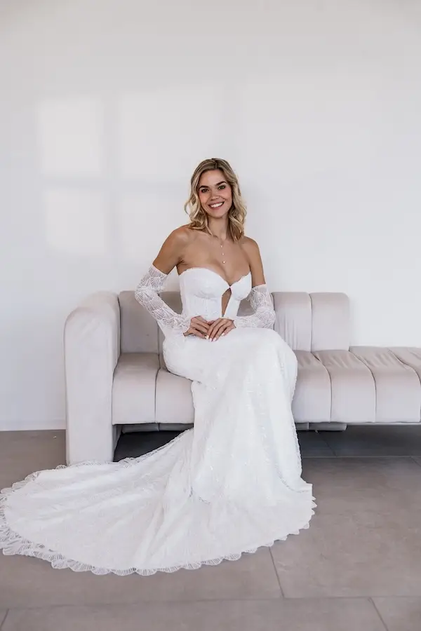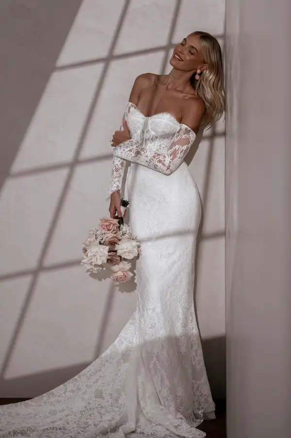 Wir führen eine sehr große Auswahl and figurbetonten Brautkleidern (Fit & Flare Brautkleider sowie Mermaid Brautkleider). Die Traumkleider mit enger Schnittform gibt es in allen Stilrichtungen, z.B. ein Fit & Flare Vintage Brautkleid mit viel Spitze oder eine ganz cleane & schlichte Variante im Fit & Flare Schnitt. Egal ob langarm oder Rückenfrei – dein figurbetontes Fit & Flare Traumkleid wartet hier auf dich!