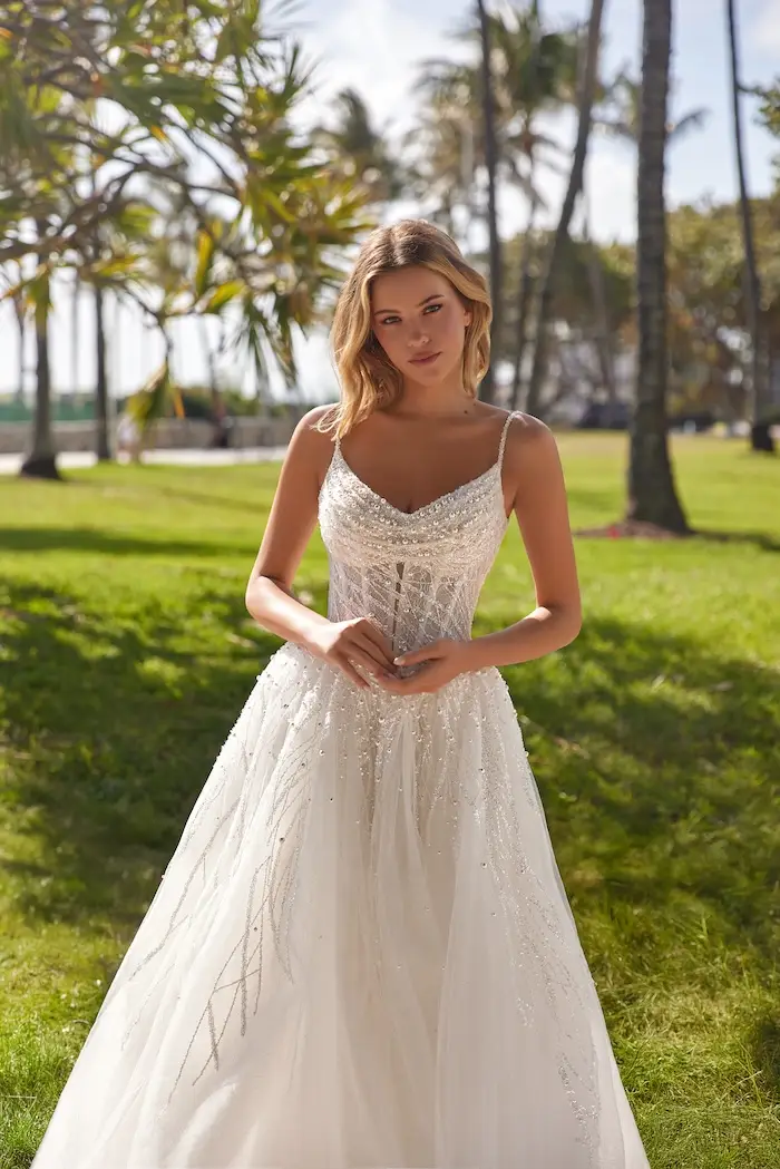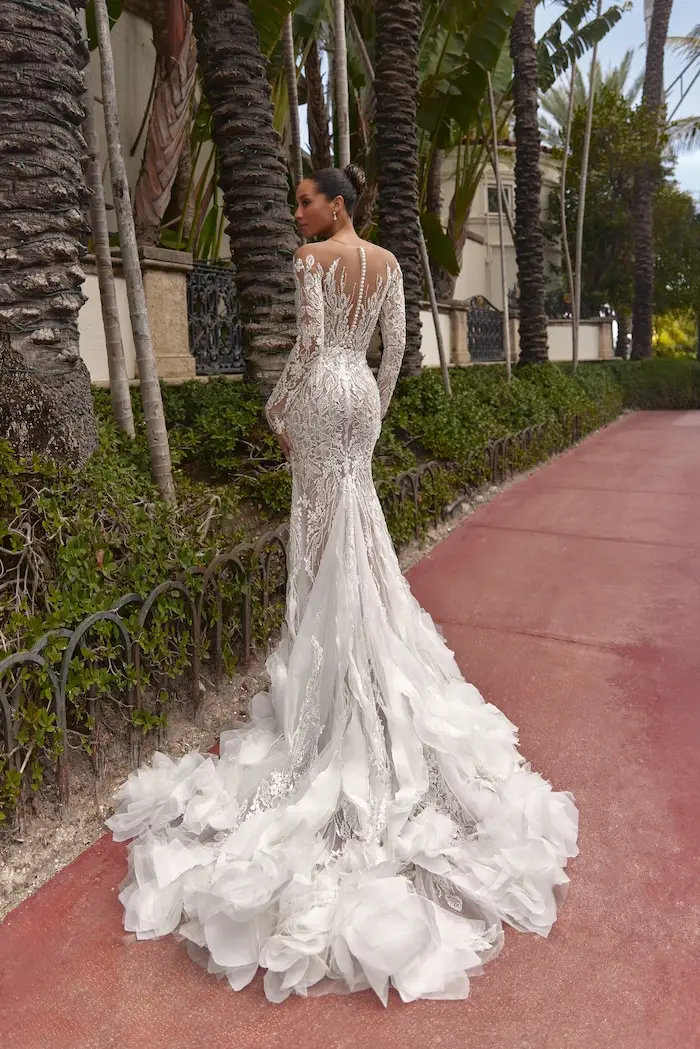 jahrzehntelange Handwerkskunst mit einem frischen, aktuellen Stil – und begeistert Kundinnen und Prominente weltweit! Als wir Oksana Mukha auf der Barcelona Bridal Week das erste mal entdeckt haben, waren wir überwältigt von den Kleidern und haben uns hier auch für ganz spezielle Designs entschieden! Wir wollten wirklich außergewöhnliche Bridal Looks für euch einkaufen!