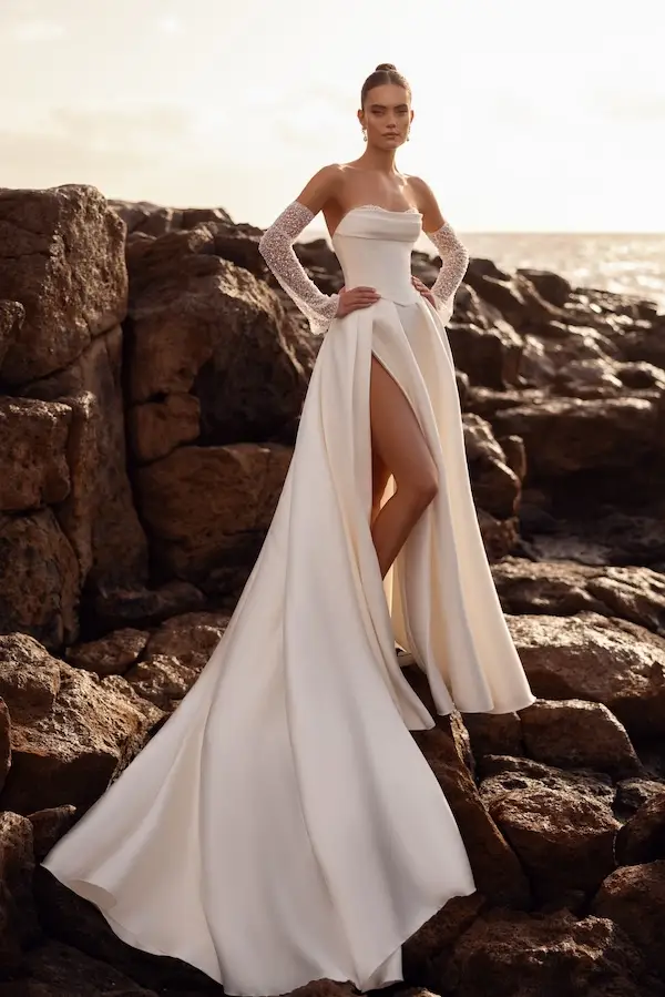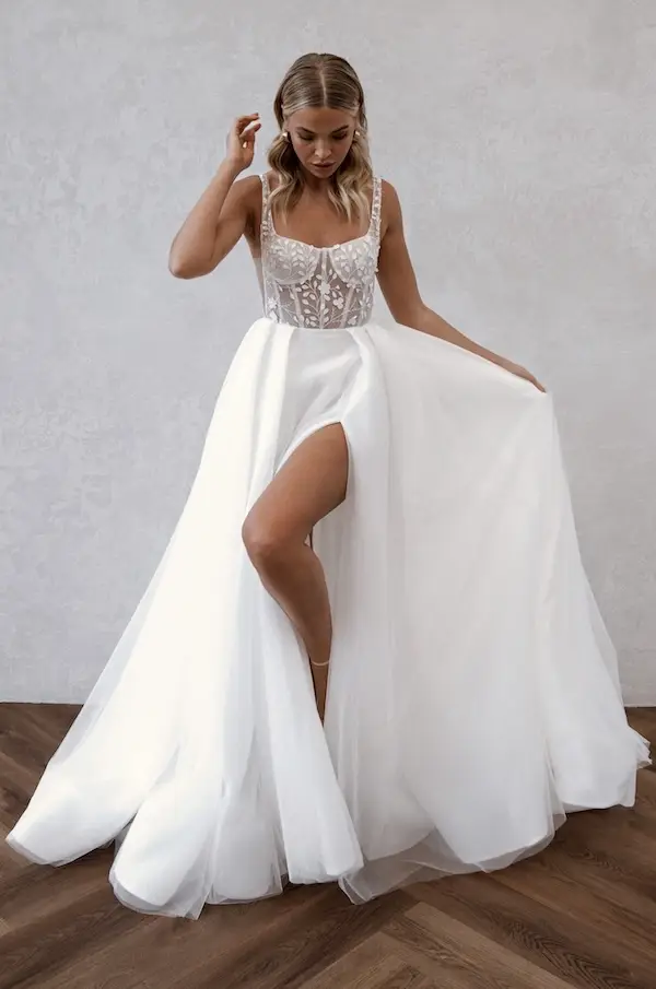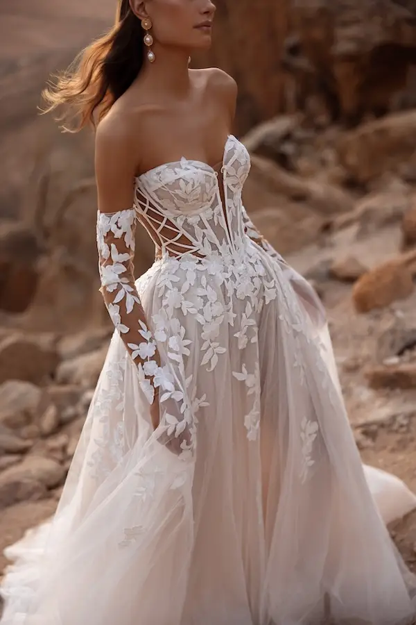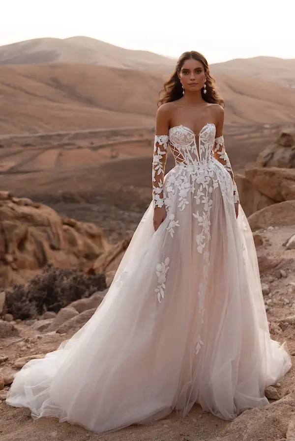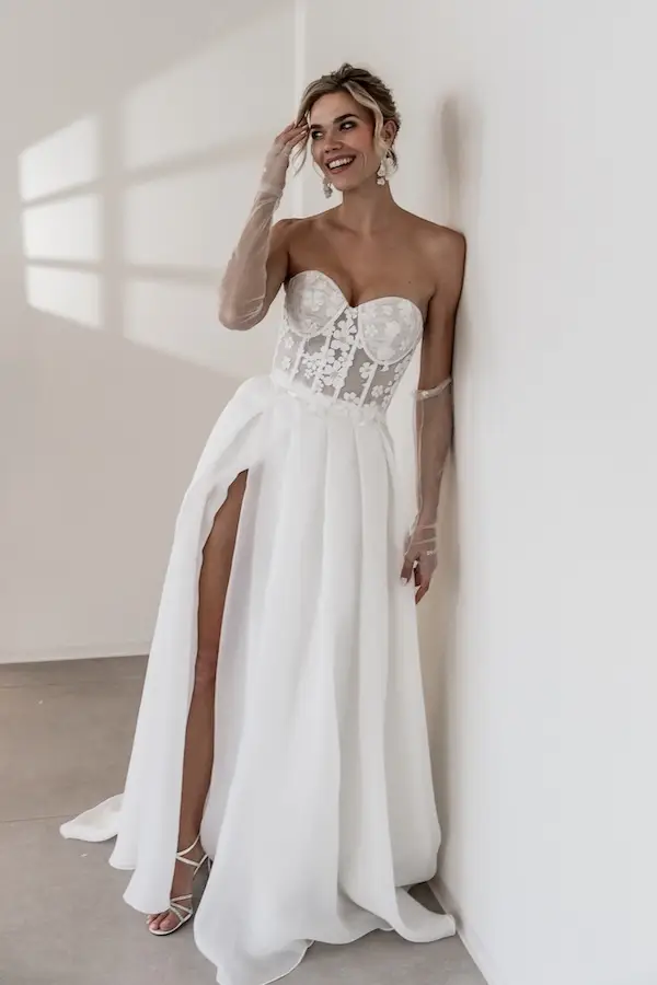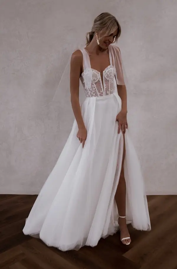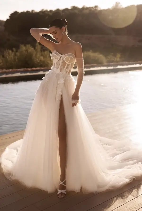 Egal, ob du ein pompöses Prinzessin Brautkleid mit viel Glitzer und Tüll suchst oder doch eher eine romantische oder moderne A-Linie – Bei White Silhouette wirst du fündig – versprochen! A-Linien Brautkleider liegen sehr im Trend! Ob als Corsagen Brautkleid, mit Trägern oder mit Ärmeln, vor allem die zauberhaften Tüllröcke mit Beinschlitz sind beliebt und traumhaft schön! Ein A-Linien Brautkleid ist außerdem wandelbar – und von schlicht bis pompös ist wirklich alles dabei!